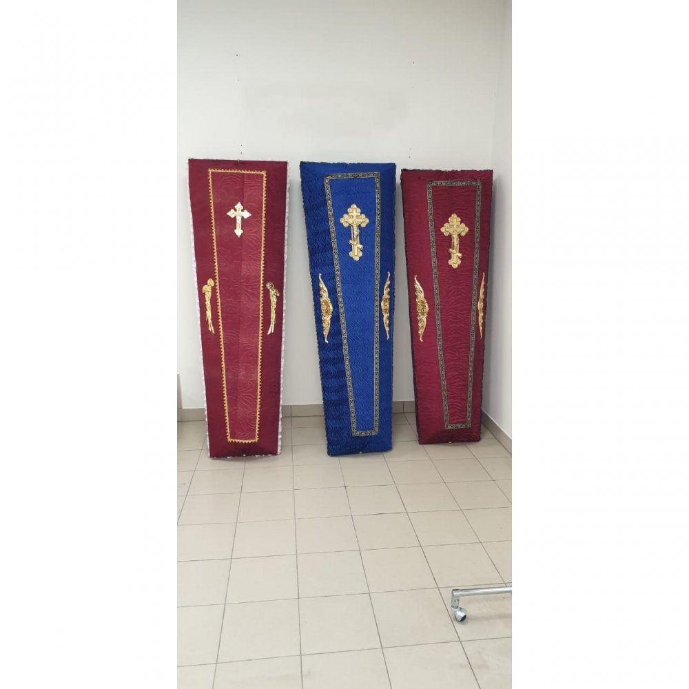 - С тканевой обивкой, покрытые лаком, VIP, для погребения по исламским канонам;