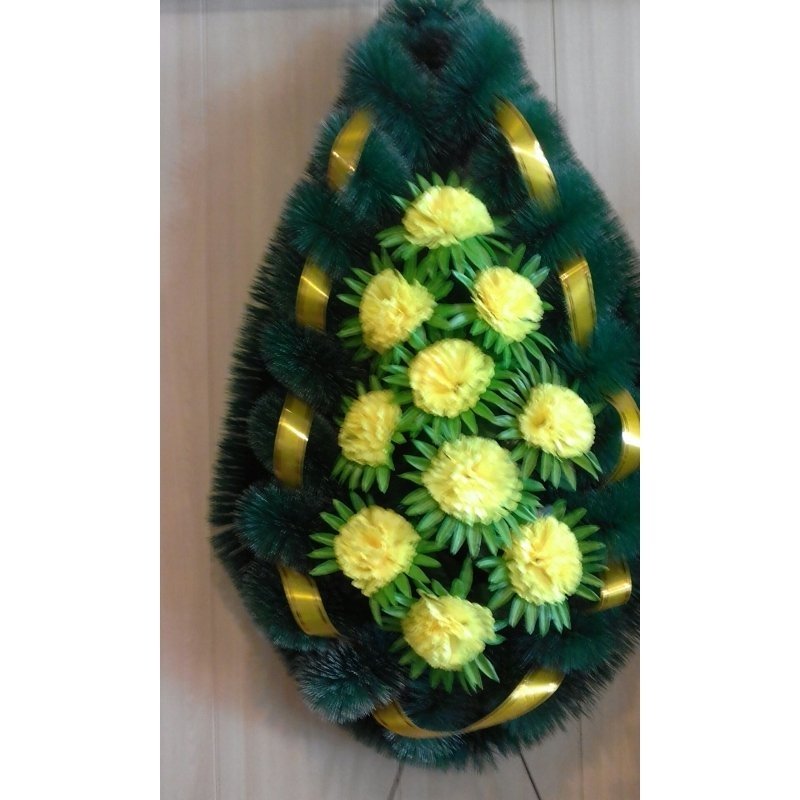 Основное требование ко всем ритуальным изделиям — это долговечность. Траурный венок не исключение. Чтобы увеличить прочность и долговечность композиции, ее делают на каркасе из проволоки или деревянных реек. К каркасу крепят зеленые ветки хвойных растений или пальмы, искусственные и натуральные цветы.