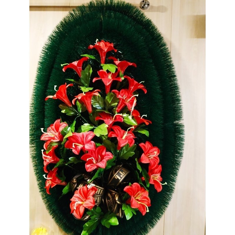 Предлагаем купить готовые венки в Александрове, из каталога или заказать выполнение венков любого дизайна. Можем реализовать необычную задумку и сделать нестандартную композицию. Проконсультируем, как подобрать или заказать венок в соответствии финансовыми возможностями. Все ритуальные принадлежности можем доставить по адресу панихиды или на погребение.